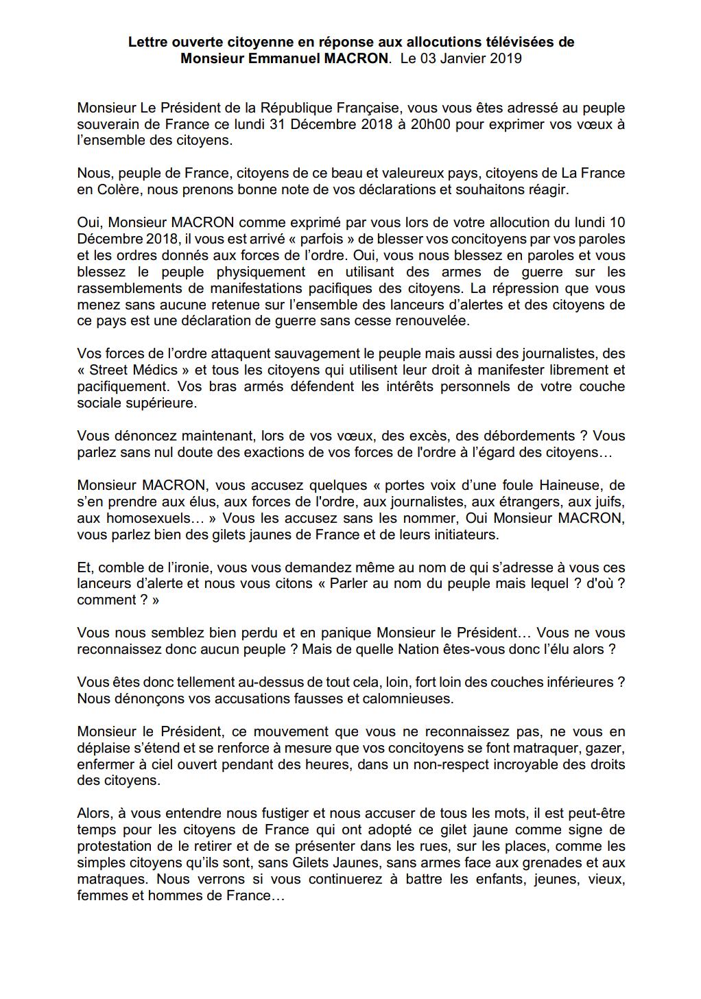 LES CAHIERS RECOMMANDENT : Déclaration du collectif LA FRANCE EN COLERE qui doit être lue ce samedi devant l'hôtel de ville à Paris, venez nombreux et en paix !